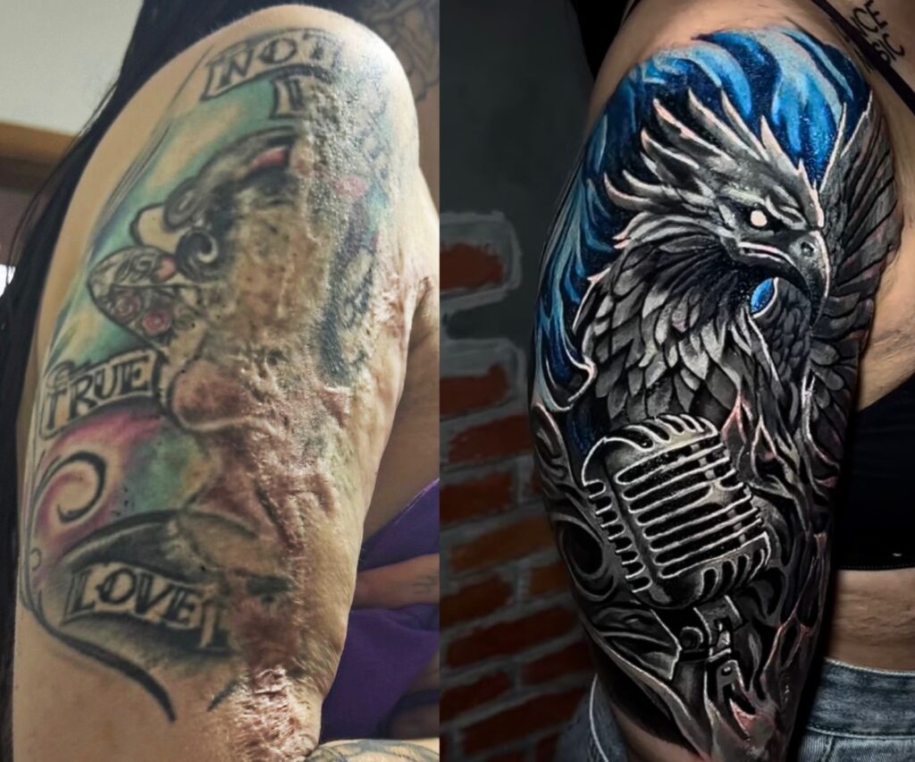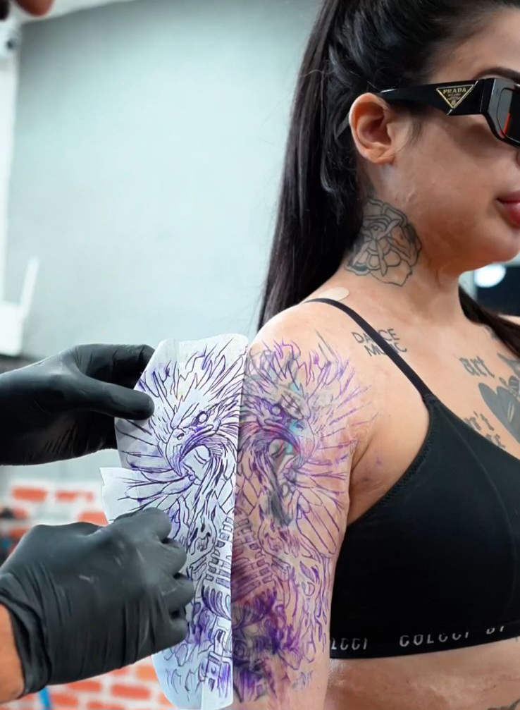 Después de más de un año de espera bajo las sombras del pasado, la esperanza renació con Tattoo Zero Dolor y el tatuador Yumaru. “Tattoo Zero Dolor fue quien me presentó a Yumaru. Para mí, él es un mago con poderes especiales aún no descubiertos”, afirma Juliana, con una luz de esperanza en sus ojos. Yumaru, conocido por sus coberturas extremas, se comprometió a transformar el dolor de Juliana en arte.